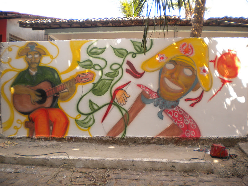 Carcará pinta a Rádio Comunitária Maresia fm 88.5, na vila de Ponta Negra levando tema 100 anos de Luiz Gonzaga com o gráfite alegre e arrojado.